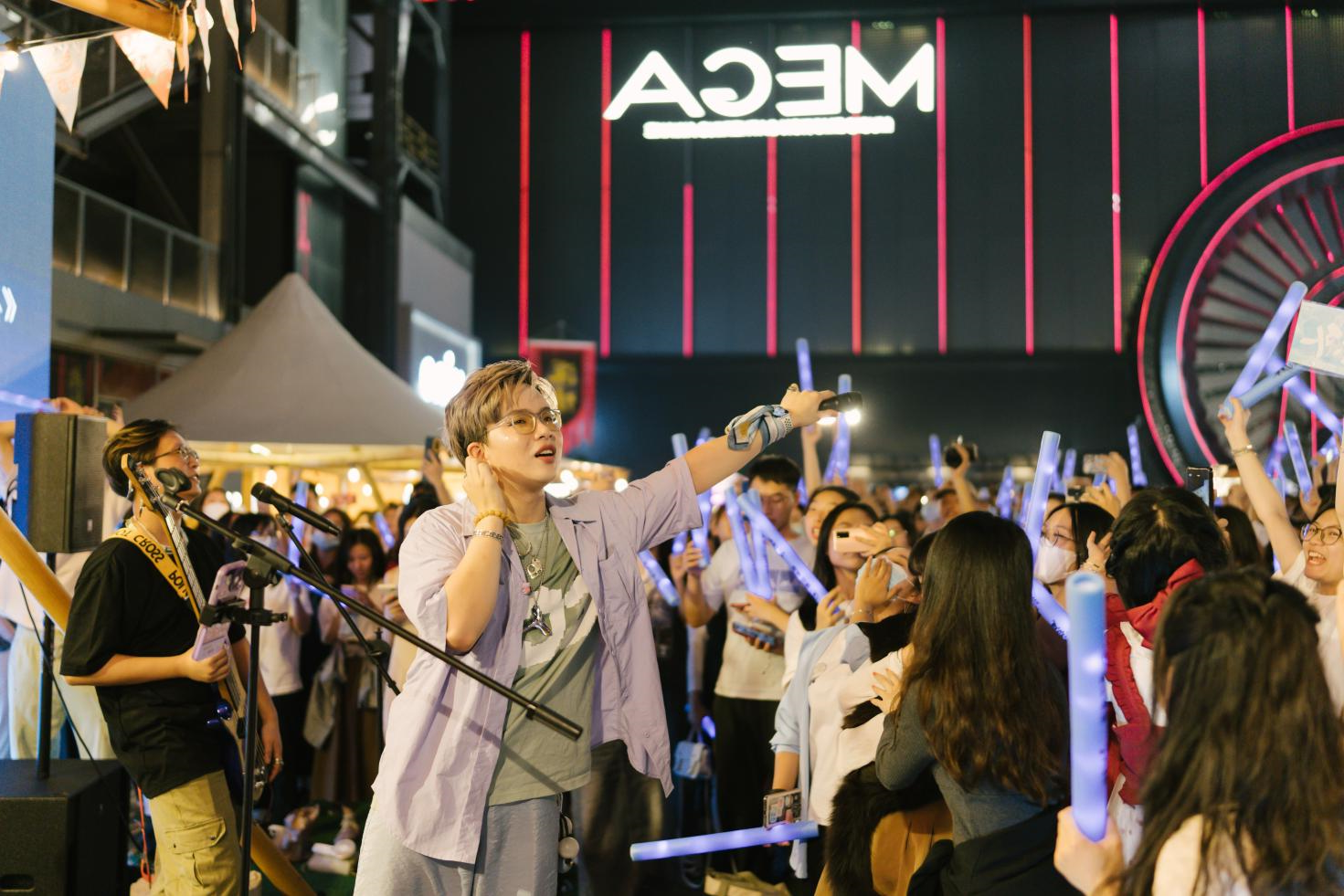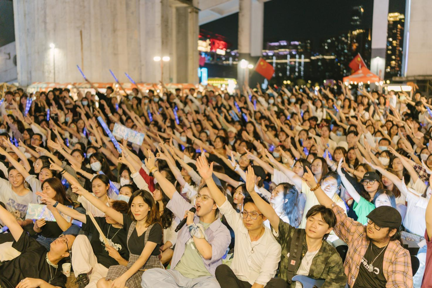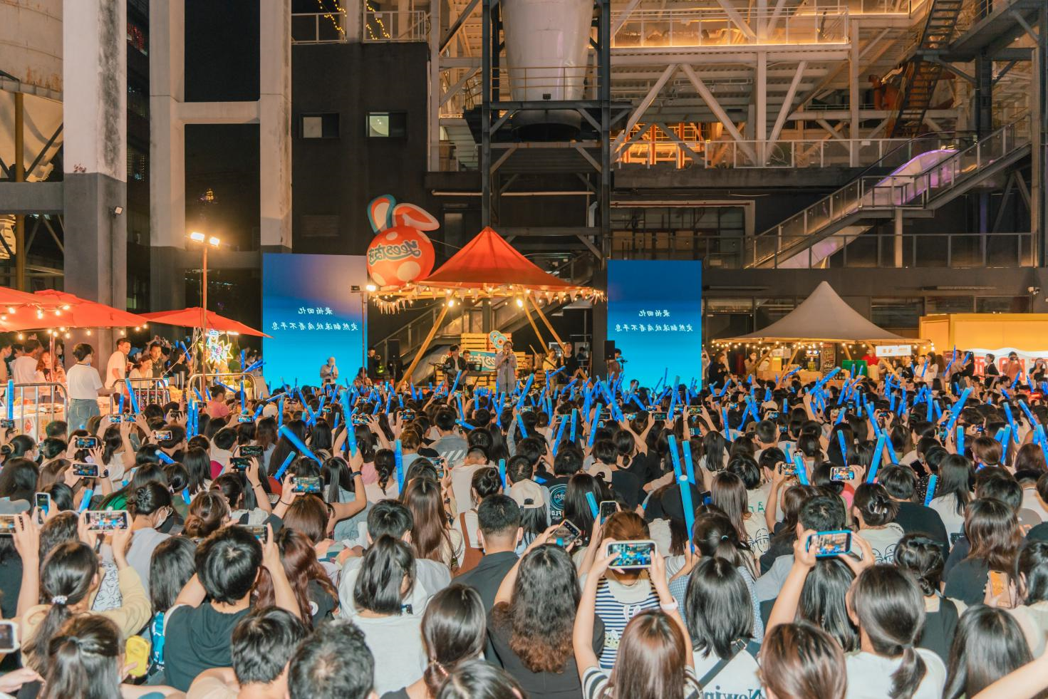 结合草地露营与工业旧改特色,向粉丝派发“珠江啤酒X白鲸乐队”定制应援棒,在微醺与音浪中打造千人蓝色“海洋”出圈场景,展现出广州夜生活的浪漫情调。