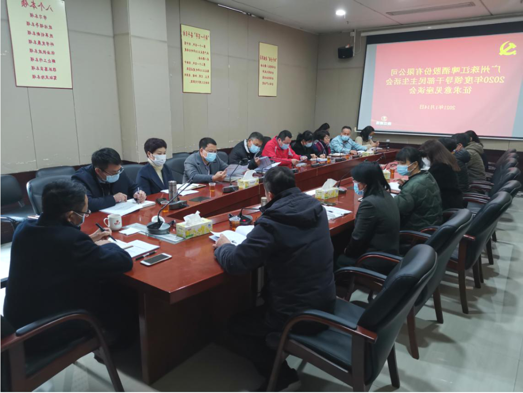 要根据珠啤控股股东2020年度领导干部民主生活会有关安排,为扎实做好会前各项准备,确保民主生活会开出高质量、开出好效果,珠啤股份组成两个征求意见小组广泛征求各基层党组织党员、干部和群众的意见。2021年10月14日,第一组组长、珠啤股份纪委副书记、纪检监察室主任李飞会同党委巡察办、党委组织部组织管理一党支部、管理二党支部、营销党总支、工程文商党支部、珠丰公司党支部老党员、领导人员和职工群众代表在总部召开珠啤持股政党生活方式会征得提出的意见座谈会;1月15日,第二组组长、党委工作部部长王江红会同公司团委组织管理三党支部、设备信息党支部、物流党支部、南沙公司酿造厂党总支、南沙公司灌装厂党支部、南沙公司综合管理党支部老党员、基层干部和社情民意代表在南沙公司召开珠啤股份民主化日子会征询指导意见研讨会。珠啤控股股东党委会副书记、副副总经理长王志斌组织多次询问建议座谈交流会。